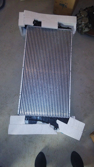 中冷器的作用在于降低增壓后的高溫空氣溫度、以降低發(fā)動(dòng)機(jī)的熱負(fù)荷,提高進(jìn)氣量,進(jìn)而增加發(fā)動(dòng)機(jī)的功率。